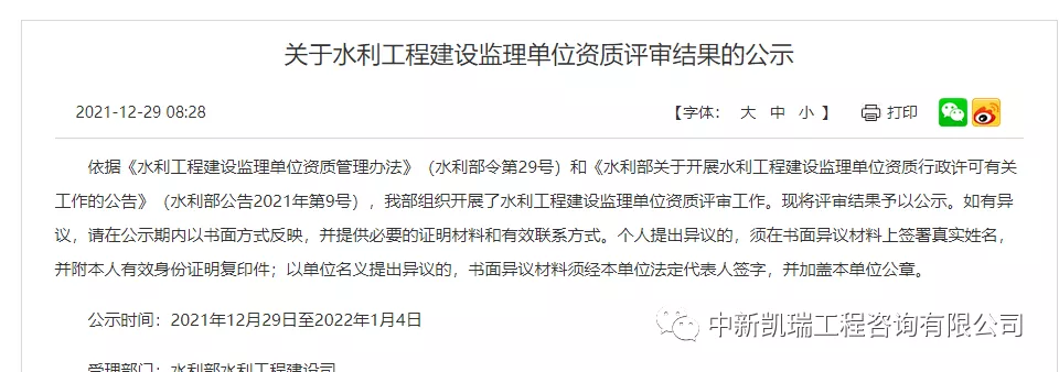 热烈祝贺中新凯瑞工程咨询有限公司在2021年底取得水利监理乙级和测绘乙级资质
