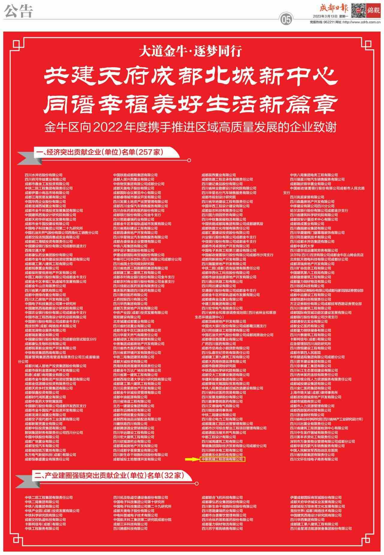 热烈祝贺公司获得2022年金牛区经济突出贡献企业